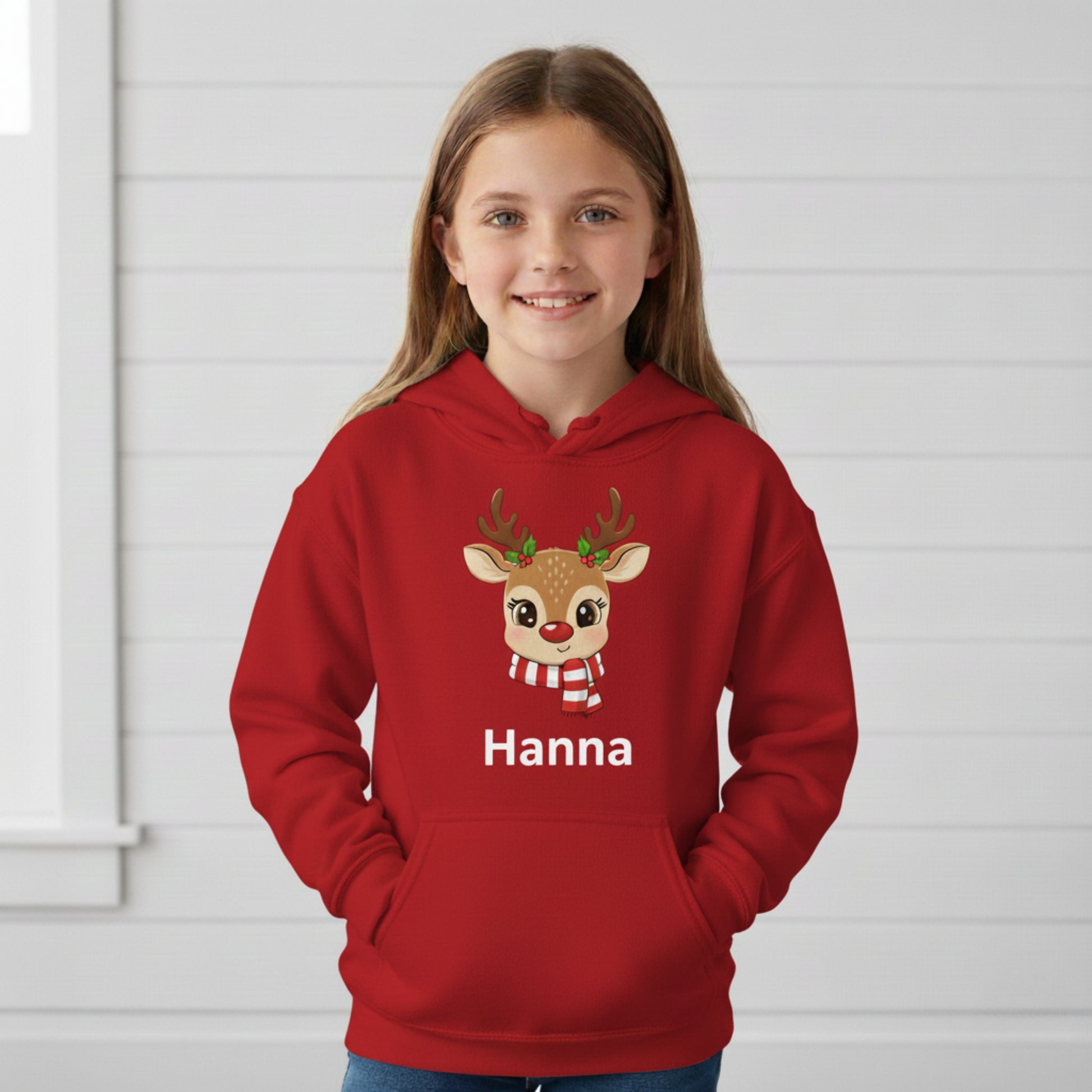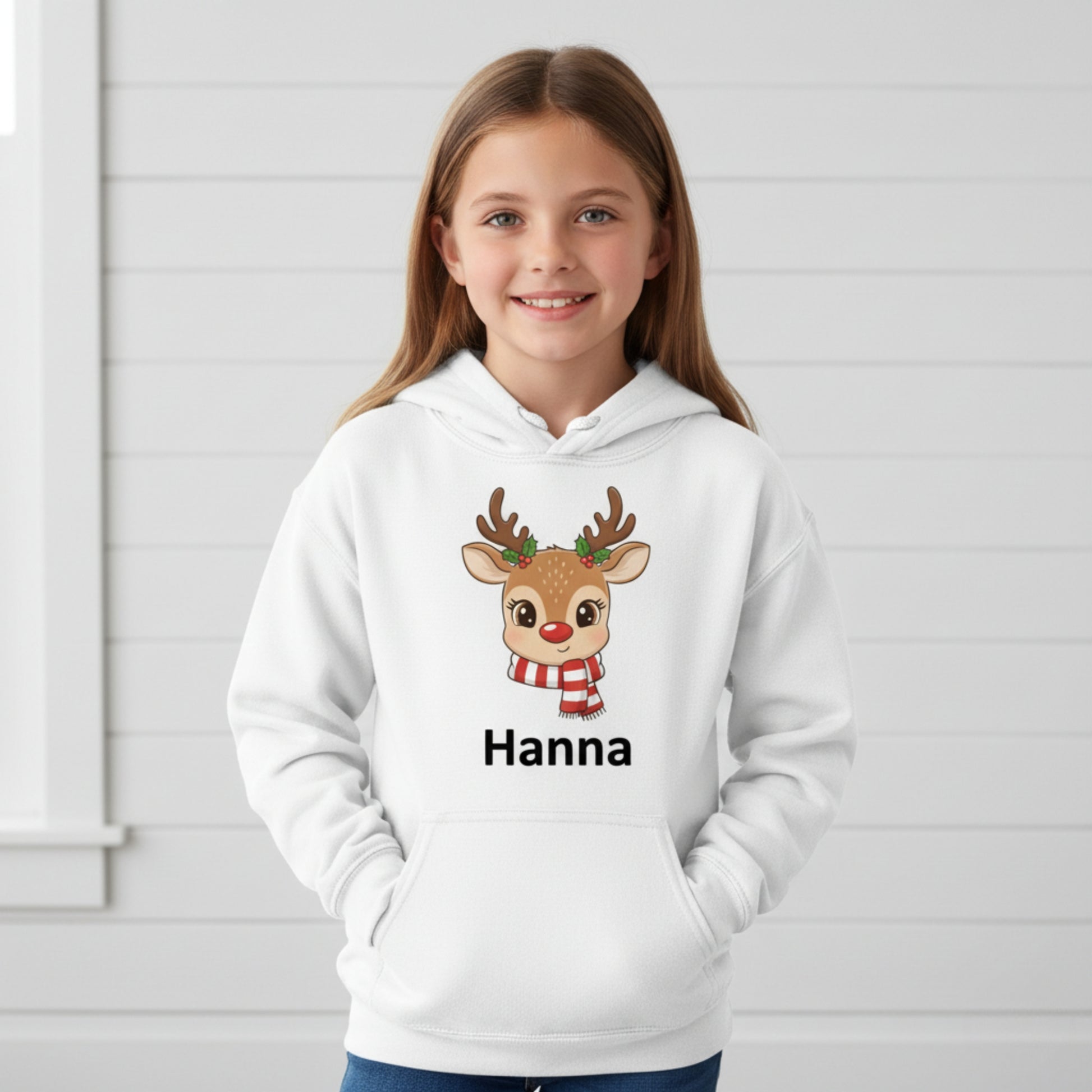 Cute Custom Reindeer Hoodie – Your Child’s Name on It! 🎁